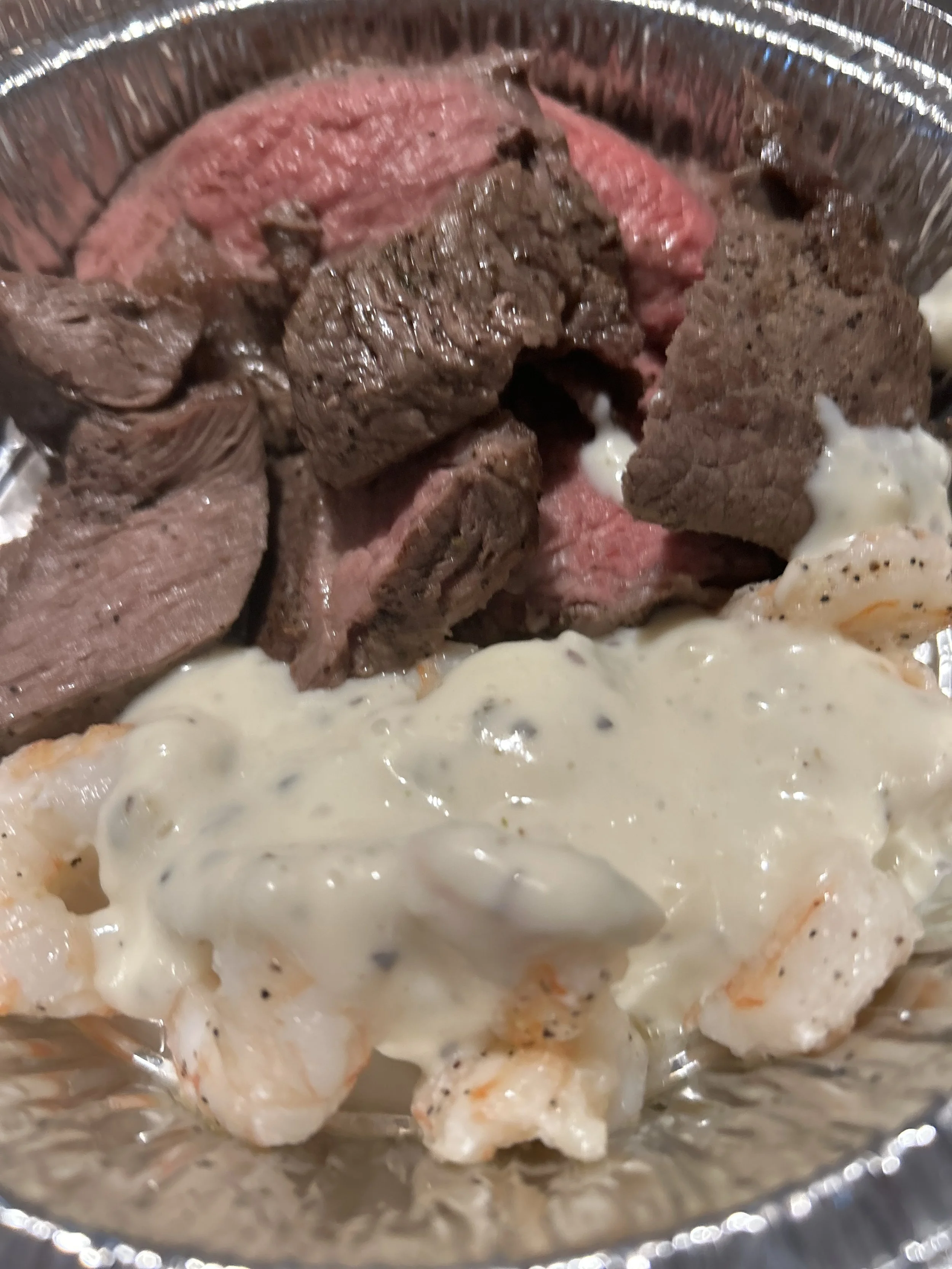 Garlic Butter Steak and Shrimp w/ Garlic OR Butter Mashed Potatoes